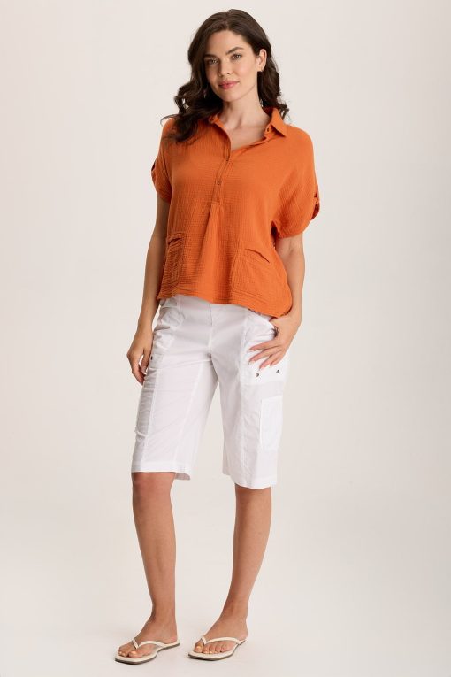XCVI Women’s Anders Short Sleeve Collared Top | Oriole