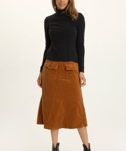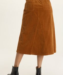 A classic gently flared silhouette makes this pull-on midi skirt a hit in corduroy. Complete with a front flapped pocket on each hip, what’s not to love?