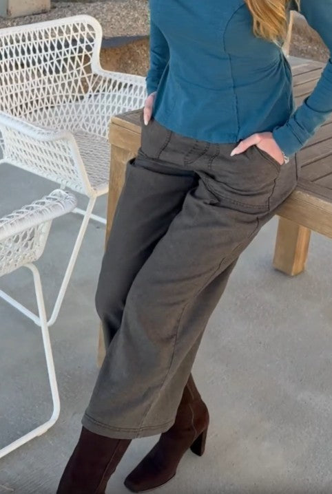 Light pleating on the front leg brings some soft volume to this pull-on style, complete with pockets and a wide-leg fit.