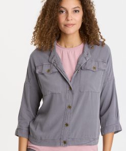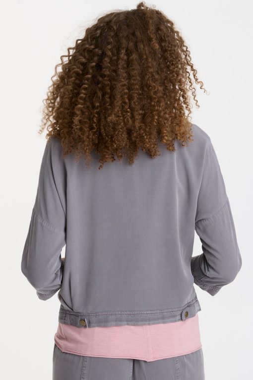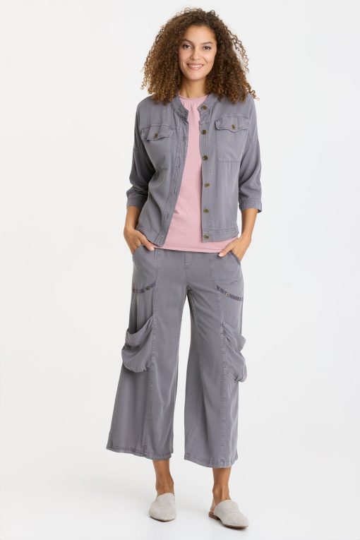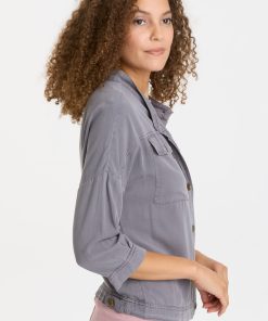 Now available in Taissa Twill, Colbert offers lightweight outerwear with a high collar, and buttons down the center and at the flapped breast pockets. A slightly boxy fit and three-quarter sleeves finish off this clean, classy look.
