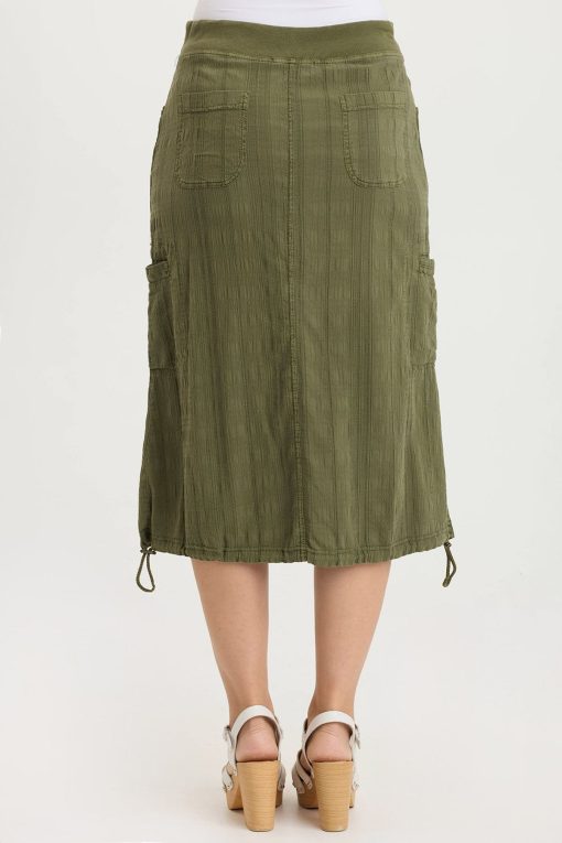 Aracelle Bubble Skirt features a cinchable hem with two welted cargo pockets, and traditional front and back pockets with a rib and drawstring waistband.