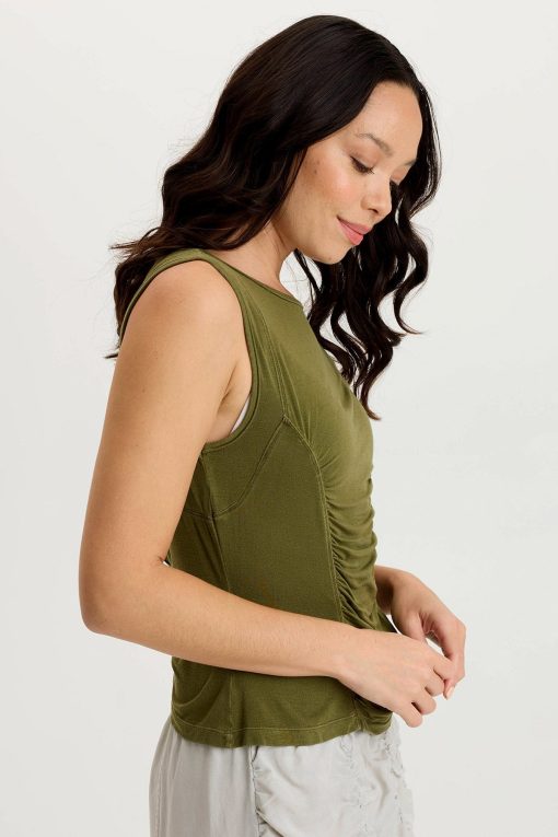 XCVI Women’s Shop Bano Jersey Ruched Panel Tank | Cypress Pigment