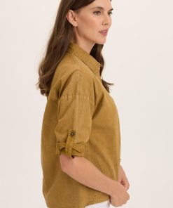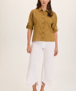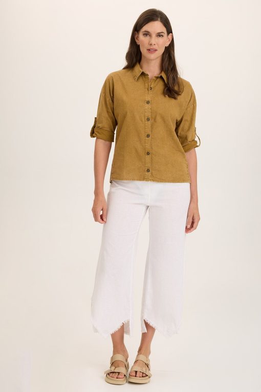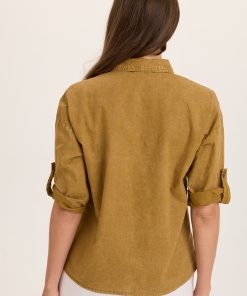 XCVI Women’s Shop Carrie Linen 3/4-sleeve Button-up | Distress Wash Copper