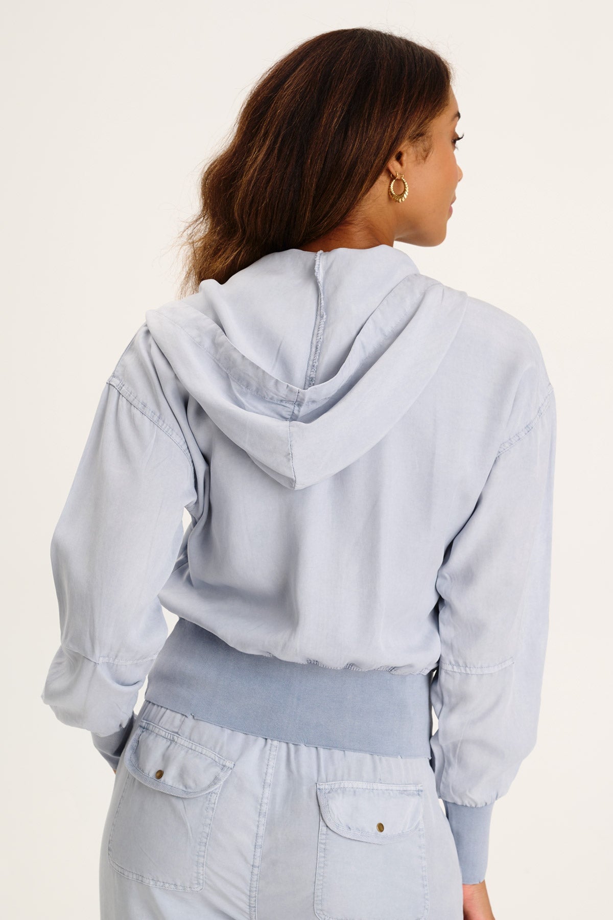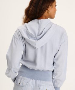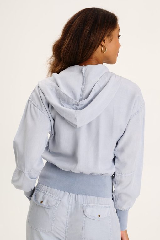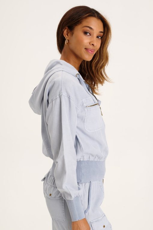 A banded distressed rib bottom and cuffs is just the beginning of this sporty number. With front zip pockets, a ring-pull zipper and a hood, Karney combines traditional bomber flair with comfort and class.