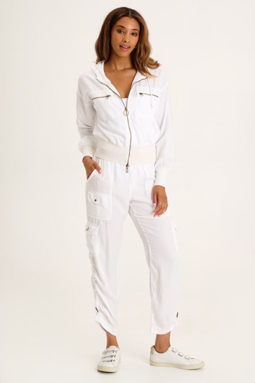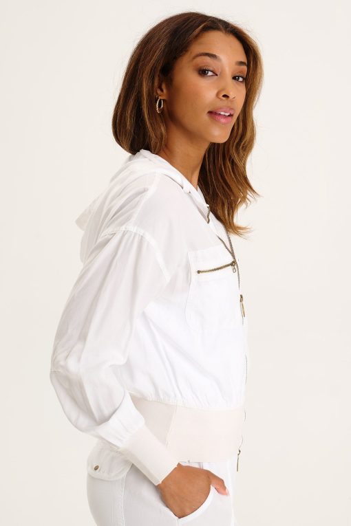 A banded distressed rib bottom and cuffs is just the beginning of this sporty number. With front zip pockets, a ring-pull zipper and a hood, Karney combines traditional bomber flair with comfort and class.