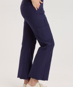 Pockets in the front, pockets in the back AND pockets on the side; this cargo flare pant features a pull-on waist and fun style lines thorughout.