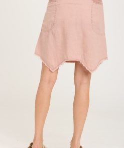 An asymmetrical sharkbite hem makes this knee-grazing skirt stand out. Featuring antique brass grommet-adorned pockets and adjustable drawstring smocked waist, Kimball is one-of-a-kind in breezy Light Linen.
