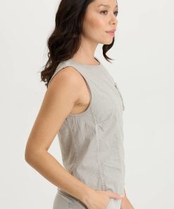 A novel idea, a perforated effect has been applied to our poplin to create the look of this simple tank. Landis has a contrasting slub jersey on the back and one lone breast pocket on a seamed front panel.