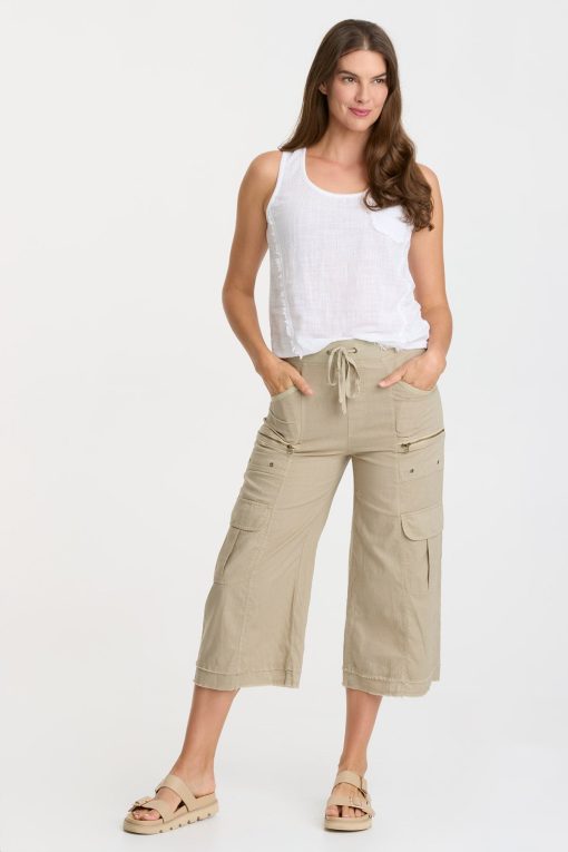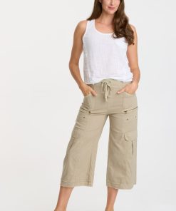 In breathable Cotton Linen, BirkÕs elastic waistband features rib contrast and a drawstring, twill tape-edged front and back pockets, an antique brass bell zipper and matching eyelet details on the front pockets.