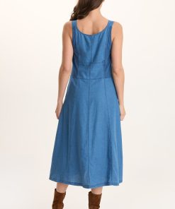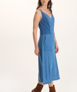 In denim-inspired Indigo Twill, this midi dress features a mock-wrap v-neck bodice, tank top straps, functional deep pockets, and flattering seaming. Flexible contrast at the torso ensures ease of movement so you can spend the day in comfort and cuteness!