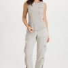 Crochet galore as Nairi Jumpsuit features mesh and floral crochet leg panels with rib insert contrast, twill tape straps, two front pockets and a snap-up front closure.