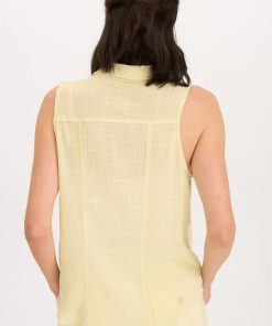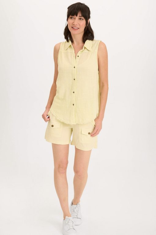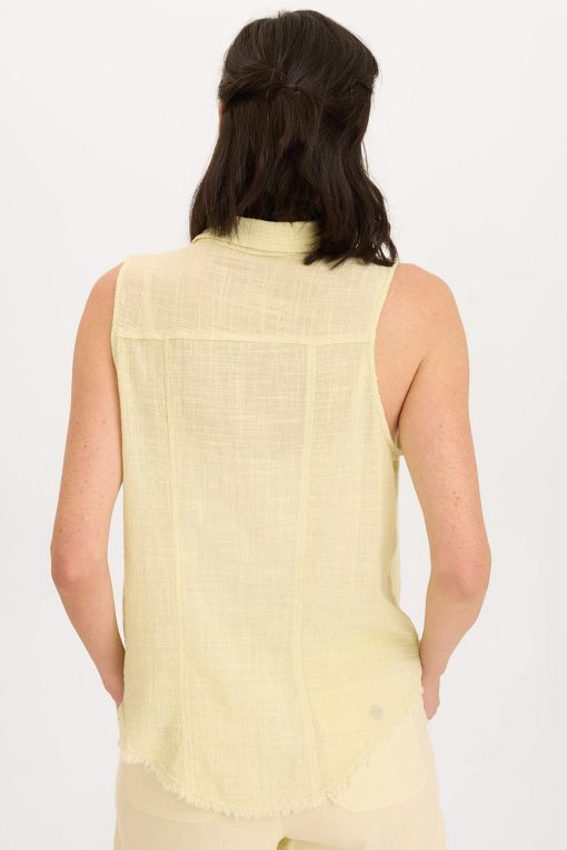 A traditional button-up style tank with a front and back yoke paired with raw edge details, made in our breezy cotton gauze.