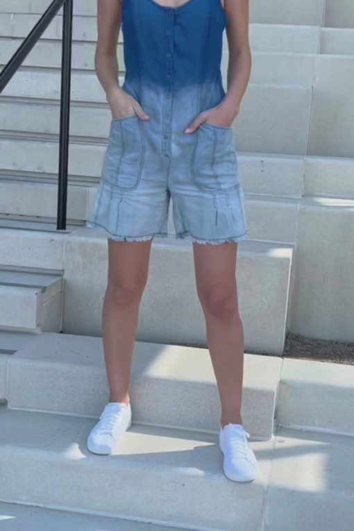Sauni Romper is here for all day comfort! With adjustable straps, an elastic cinched back waist, cool seaming and pleats team up with jersey inserts and a snap-up front closure.