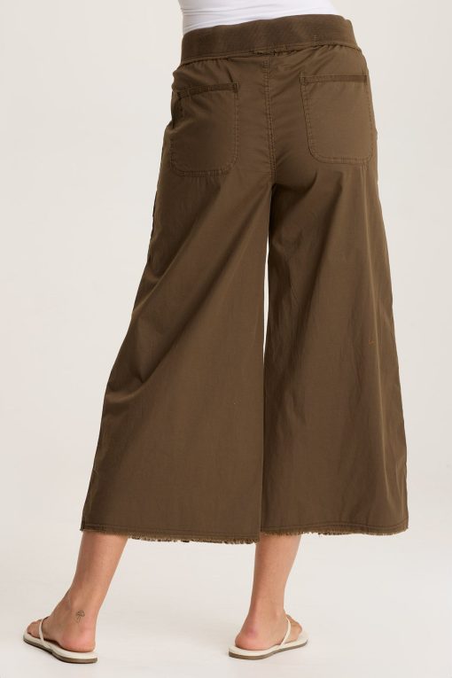 Shirrings below an exaggerated side pocket add soft volume and movement to this drawstring-waist poplin crop. Throw in a raw-edge hem and antique brass hardware and you’ve got the beachy yet elevated capri look you’ve been dreaming of!