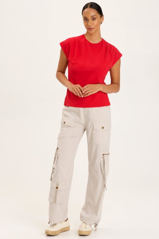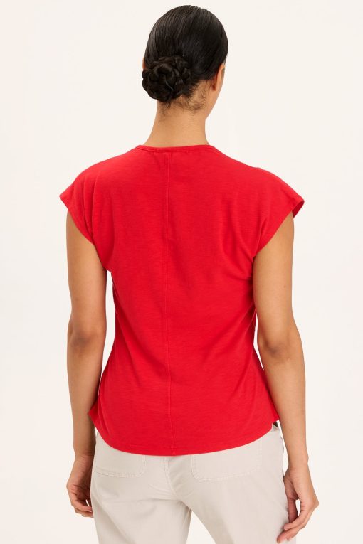 Two pleats adorn the shoulders of this mock neck classic silhouette. In our breezy slub jersey, comfort and style are hand in hand with this stunner.