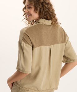 A slightly boxy yet gently contoured fit, flapped breast pockets, and a classic collar blend menswear inspiration with a feminine flair for some subtle edge, made easy and cozy with snap-up closure and our signature Soft Twill.
