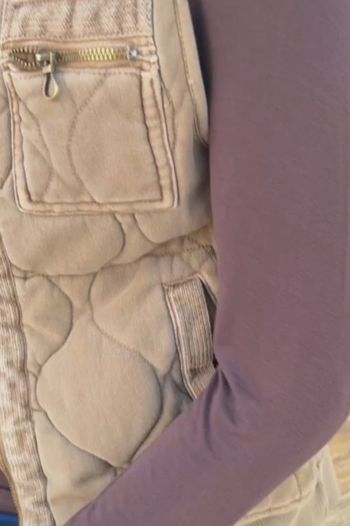 XCVI Women’s Tops Aeric Quilted Zipper Pocket Vest | Plateau Pigment