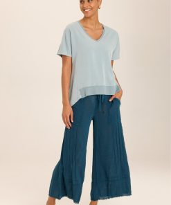 Made this time in Taissa Twill, Clara’s v-neck cut, dolman sleeves, pitched forward side seams, contrasting back upper panel, rib finish at the neck and front hem, and functional back placket with buttons make this top a go-to in your daily wardrobe.