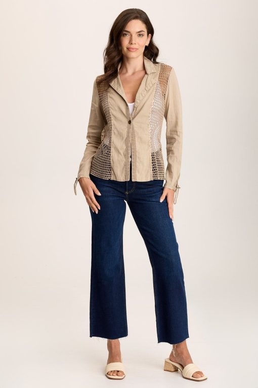 Adjustable cinchable cords near the wrists and cotton crochet paneling on either side make this single-button linen blazer stand out. A classic collar and lightly curved cut bring out the sophisticate that is the Contessa Jacket!