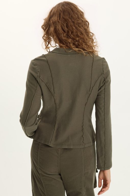 A fitted blazer in an unexpected Twill Knit, Dunne offers all the polish and classic silhouette of a blazer with plenty of unique elements, including a three-buttonn closure, flattering exposed seams throughout, a semi-cropped fit, and two envelope pockets at either hip. Cute as can be!