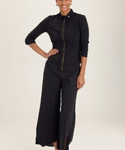 SheÕs back! A stylish, elevated, track jacket-inspired piece of lightweight outerwear, Janet is all for you! Featuring a stand collar with button details, rib inserts at the sides and at the 3/4 sleeves for an impeccable and comfortable fit, twill details at the zipper front, two front in-seam pockets, and ruching on the sleeves and back, Janet is as full of details as she is life!