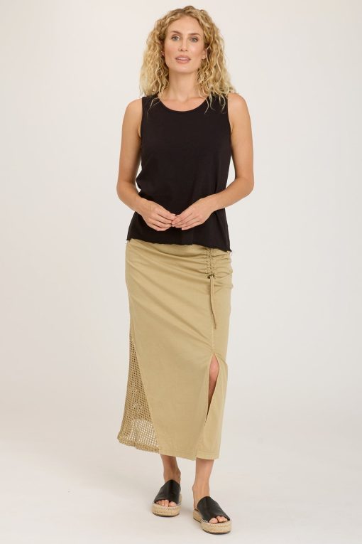 A go-to slightly scoop-neck tank in a duet of jersey and linen. Pairs with everything, ready to wear anywhere.