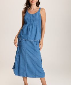 XCVI Women’s Tops Norelle Flowy Pintuck Mock-denim Twill Tank | Etiolate Wash
