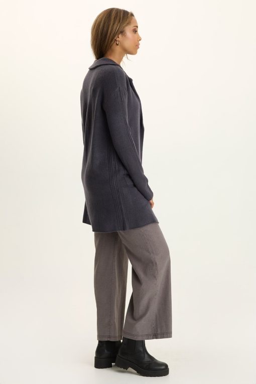 With striped trim down the arms, classic side pockets, and a plush lapel, this button-up longline cardigan is anything but your grandpa’s sweater!