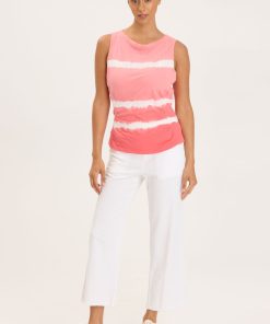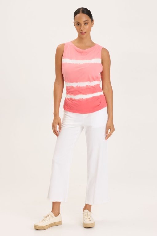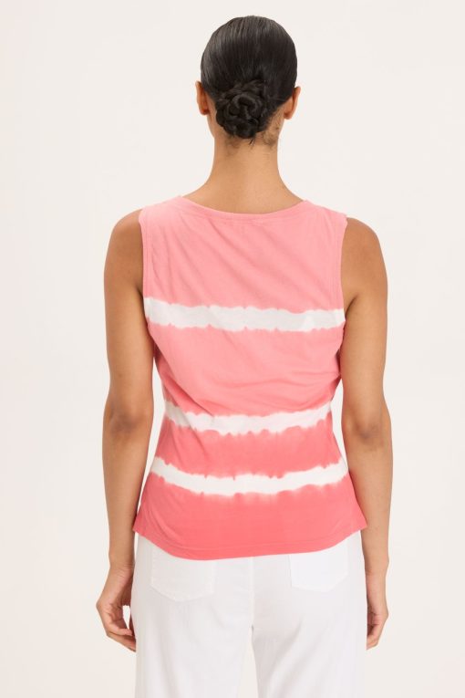 - Color Description: White striped vibrant coral tie dye