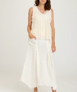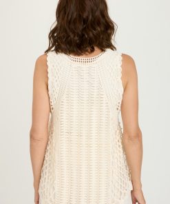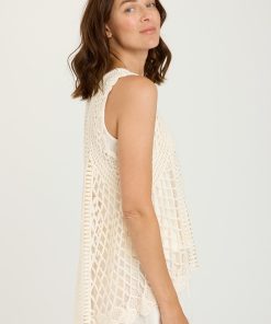 A v-neck cut and asymmetrical hem bring out the best in this layered crochet tank. Delicate and beautiful, Rue absolutely rules!