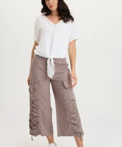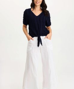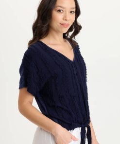XCVI Women’s Shop Curine Stripe Voile/jersey Knotted V-neck Top | Cherry Fizz Pigment